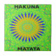 This artwork features a symmetrical, radial design that resembles a stylised sun or flower. Composed of repeating triangular or petal-like shapes radiating from a central point, the design creates a sense of movement and flow. The phrase "HAKUNA MATATA" is elegantly written in a straight line across the top and bottom of the image, partially obscured by the radial elements, adding a unique visual effect.