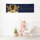 African Prince Royal Baby Shower Banner-with adorable African Prince wearing a gold crown, resting on a regal lion crest with welcome banner. Gold font colour on royal blue background.