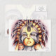 Portrait of a majestic African queen wearing a mask and elaborate headdress. The artist, Timie, was inspired by the Maasai People of East Africa. He experimented with pen and coloured pencils and used alternate colours instead of the typical colours used by the Maasai in body art.