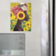 This contemporary art piece features a serene portrait of a young African woman. She stands gracefully in a vibrant field of sunflowers, her eyes giving a look of peaceful meditation. A striking red bandanna adorns her head, with a sunflower delicately placed on it, symbolising strength and beauty. The artwork blends traditional elements with modern aesthetics, celebrating cultural elegance and the empowering essence of Black women.