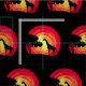African sunset illustration with red grunge sun, giraffe and tree silhouette decoration on black background. It is possible to change the background colour and to add different one to the design with your choice.