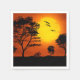 Beautiful digital art African sunset scene with trees, birds and stars.