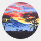 African Sunset Safari Animal Silhouette Painting Classic Round Sticker