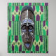 African Tribal Mask Green Blue Purple Canvas Poster