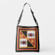 It's very roomy. The fabric is soft and flexible, and the strap is wide and adjustable to fit across the body. The printing is true to the photo.
