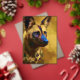 A digital painting that merges hyper-realism with bold, contemporary abstraction. This captivating portrait of a African Wild Dog showcases a harmonious clash of vibrant hues deep blues, golden ochres, and electric greens that breathe life into every fur strand and shadow. The textured, almost cubist brushstrokes add depth and movement, transforming a simple canine profile into a statement of raw beauty and emotional intensity.