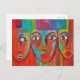 This custom postcard features a contemporary oil painting of three African women's faces vibrantly painted in colourful brush textures.