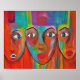 This custom poster features a contemporary oil painting of three African women's faces vibrantly painted in colorful brush textures.