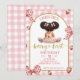 afro african Girl Pink Bow strawberry berry first Invitation