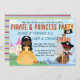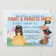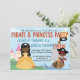 Afro American Princess and Pirate Double Birthday: Ahoy there your highness! Our birthday princess and pirate invitation, brings together two popular characters in fairy tale history. This fantasy filled invitation features an Afro American pirate in his ship and princess by the sea. It's the ideal invitation for siblings having a joint party. Shiver me timbers it's perfect for girls and boys of all ages. Let their little friends decide to be walking the plank or sparkle like an enchanting princess.