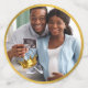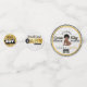 Urban Retro 90's Hip Hop Baby Shower Vibe! features adorable shy Afro African American baby boy on front. Modern white brick background. Black, white and gold colours. Chequerboard pattern accents and boombox. Customise with mum and dad's name! Add your own photo! ©2022 Miss Sassy Party Designs