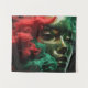 Afro Goddess” blends gold and emerald tones with flowing red and green smoke, symbolising power, beauty, and cultural pride in a bold, surreal design that radiates strength and creativity.