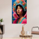 An image of a afro lady with starfish hat. This is an AI generated artwork with a floral theme.
