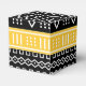 Saytoon's Modern Mud Cloth is a digital adaptation of the traditional African pattern with modern design and colour schemes. This pattern is black and white with a yellow-gold and white stripe that make these favour boxes unforgettable! Take your gifting to a whole new level with these items. Perfect for an Afrocentric Christmas, Kwanzaa celebration, Juneteenth, African style weddings, birthdays, anniversaries and so much more.