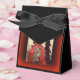 A bold and festive touch to your holiday gathering! This Afrocentric Christmas Favour Box features a photo image of a contemporary holiday tree made from a dress form dark-skin mannequin. The bodice is a short-sleeved sequined red dress and the bottom is made from artificial greenery decorated with red streamers and ornaments of purple, red and gold. The dress form has a big, bold necklace and matching bracelet with the same colour scheme. The African-American-style dreadlocks complete the fashion statement. A black Christmas tree silhouette stands in the background. Text may be added for personalisation at no additional charge! Photography by Glenda Motsavage, a Florida-based travel writer and author.