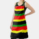 Dramatically vivid stripes of Afrocentric inspired red, yellow, black and green used to design this apron for men and women.