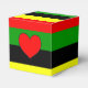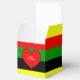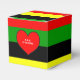 Dramatically vivid stripes of Afrocentric inspired red, yellow, black and green used to design this classic favour box. Fun for men and women.