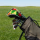 Dramatically vivid swirls of Afrocentric inspired red, yellow, black and green used to design this eye-catching golf head cover.