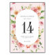 Afterglow Garden Floral Wedding Table Number
