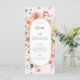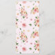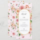 This romantic floral wedding menu features soft watercolor garden blooms set against a blush background for a refined and feminine look. Delicate florals in blush, peach, and warm greenery frame an elegant arched layout, creating a menu design that feels timeless, graceful, and thoughtfully styled.