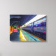 Afternoon Train, the title of the artwork on this Canvas Print, is original artwork by ZoeSPEAK, done in primary pastel colours. The shiny, silvery blue train is stopped at the station, where the yellow sunlight reaches the platform, and lights up the pink wall of the building.