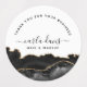 Agate Black And Gold Marble Business Thank You Labels. Elegant agate black and gold marble hand lettered style calligraphy script professional business stickers. Perfect for makeup artists, hair stylists, cosmetologists, and more!