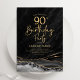 Black and gold agate 90th birthday party invitation. Elegant modern design featuring watercolor agate marble geode background, faux glitter gold and typography script font. Trendy invite card perfect for a stylish women's bday celebration. Printed Zazzle invitations or instant download digital printable template.