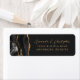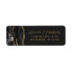The left-hand edge of this elegant modern wedding invitation return address label features a black watercolor agate border trimmed with faux gold glitter. The customizable text combines gold-colored handwriting and sans serif fonts on a dark off-black background.