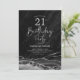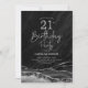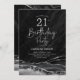 Black and silver agate 21st birthday party invitation. Elegant modern design featuring watercolor agate marble geode background, faux glitter silver and typography script font. Trendy invite card perfect for a stylish women's bday celebration. Printed Zazzle invitations or instant download digital printable template.
