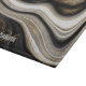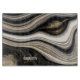 Modern monogrammed name cutting board with a black white and gold agate fluid marble background. Personalise with name and initial.