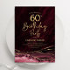 Burgundy and gold agate 60th birthday party invitation. Elegant modern design featuring dark red marsala wine watercolor agate marble geode background, faux glitter gold and typography script font. Trendy invite card perfect for a stylish women's bday celebration. Printed Zazzle invitations or instant download digital printable template.