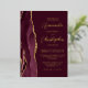 The left-hand edge of this elegant modern wedding invitation features a burgundy red watercolor agate border trimmed with faux gold glitter. The customisable text combines script and sans serif fonts in real gold foil on a burgundy background. The reverse side features a matching agate design.