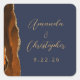 These elegant modern wedding stickers feature a burnt orange watercolor design trimmed with faux gold glitter. Easily customise the gold-coloured text on a navy blue background, with the couple's names in stylish handwriting calligraphy and the date in sans serif font.
