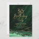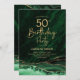 Emerald green and gold agate 50th birthday party invitation. Elegant modern design featuring watercolor agate marble geode background, faux glitter gold and typography script font. Trendy invite card perfect for a stylish women's bday celebration. Printed Zazzle invitations or instant download digital printable template.