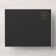 The left-hand edge of this elegant modern all-in-one wedding invitation and RSVP features an emerald green watercolor agate border trimmed with faux gold glitter. The customisable text combines gold-coloured stylish calligraphy script and sans serif fonts on a slate black background. The return address appears on the outside flap and the reverse side of the detachable RSVP card in gold-coloured text on solid slate black.