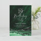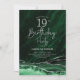 Emerald Green and silver agate 19th birthday party invitation. Elegant modern design featuring watercolor agate marble geode background, faux glitter silver and typography script font. Trendy invite card perfect for a stylish women's bday celebration. Printed Zazzle invitations or instant download digital printable template.