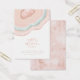 Not all wedding designs are created equal. The asymmetrical layouts for the pieces in this striking wedding set prove that's not a bad thing! Wavy bands of colour in contrasting shades of rose gold blush and soft teal blue with a centre of glittering crystal form a geode/agate accent on most pieces in the set. The wedding 'Website' enclosure card shown here features the above plus a template to add a personal message, your names and wedding date. The reverse features a coordinating abstract background reminiscent of stone veined with glitter. Search ID647 to see all the coordinating pieces in this set.