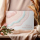 Not all wedding designs are created equal. The asymmetrical layouts for the pieces in this striking wedding set prove that's not a bad thing! Wavy bands of colour in contrasting shades of rose gold blush and soft teal blue with a centre of glittering crystal form a geode/agate accent on most pieces in the set. The wedding 'Guest Book' shown here features the above plus a template to add a personal message on the front, your names and wedding date on the back cover. Search ID647 to see all the coordinating pieces in this set.