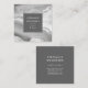 Trendy, modern square business card featuring an agate geode design in shades of grey and white, with faux silver glitter highlights. Personalise it with your name in white copperplate font and your title in white serif italics on a grey double-bordered square. Add your name, title, and contact details in white on the solid grey reverse side.