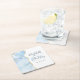 Agate Geode Script Baby Blue Gold Wedding Square Paper Coaster