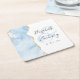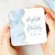 This elegant modern wedding coaster features a baby blue watercolor agate geode design trimmed with faux gold glitter. Easily customise the charcoal grey text on a white background, with the couple's names in handwriting calligraphy over a large, pale blue ampersand.