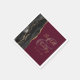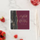 These elegant modern wedding napkins feature a black watercolor design trimmed with faux gold glitter. Easily customise the gold-coloured text on a burgundy red background, with the names of the bride and groom in handwriting calligraphy over a large ampersand.