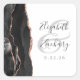 This elegant modern wedding sticker features a black watercolor agate geode design trimmed with faux rose gold glitter. Easily customise the charcoal grey text on a white background, with the names of the bride and groom in handwriting calligraphy over a large, light grey ampersand.