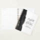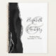 This elegant modern wedding planner features a black watercolor design trimmed with faux silver glitter. Easily customise the charcoal grey text on a white background, with the names of the bride and groom in handwriting calligraphy over a large, pale grey ampersand. Add the title and wedding date below in italics. The back cover features a matching black and silver agate design.