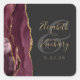Agate Geode Script Burgundy Gold Dark Wedding Square Sticker