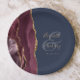Agate Geode Script Burgundy Gold Navy Blue Paper Plate