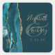 Agate Geode Script Dark Teal Blue Gold Wedding Square Sticker