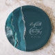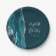 Agate Geode Script Dark Teal Silver Wedding Paper Plate