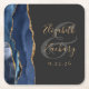 Agate Geode Script Navy Blue Gold Dark Wedding Square Paper Coaster
