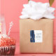 This elegant modern wedding sticker features a navy blue watercolor agate geode design trimmed with faux rose gold glitter. Easily customise the charcoal grey text on a white background, with the names of the bride and groom in handwriting calligraphy over a large, pale blue ampersand.